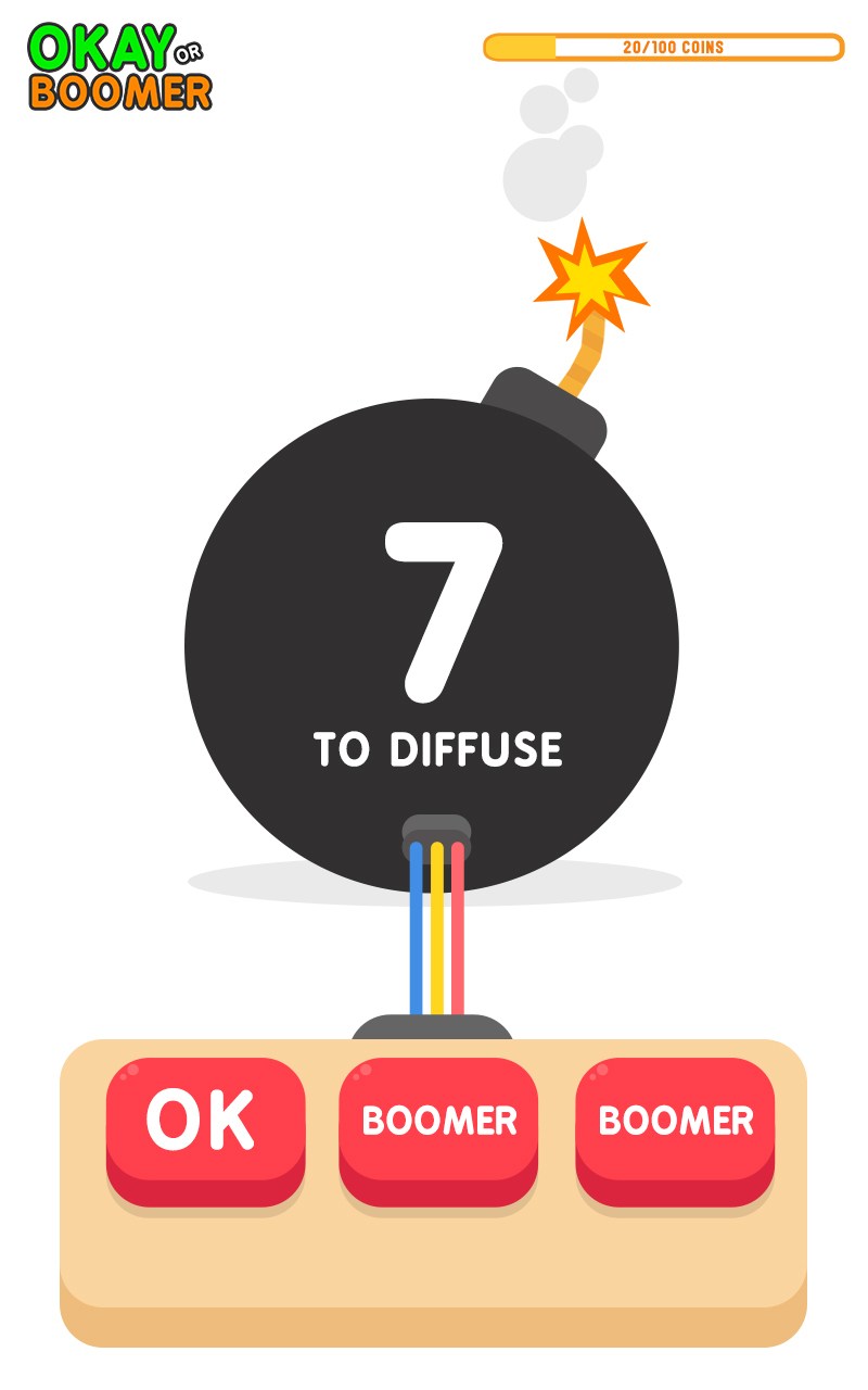OKAY or BOOMER 2 choices: OKAY or BOOMER! Diffuse the bomb! DOWNLOAD THE MOST EXPLOSIVE GAME EVER! Related